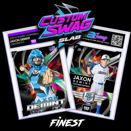 Upload your favorite player image, and we will create a one-of-a-kind trading card and place it in a custom 1/1 hard-cased slab! These are quickly becoming one of the hottest products at 83Swag!