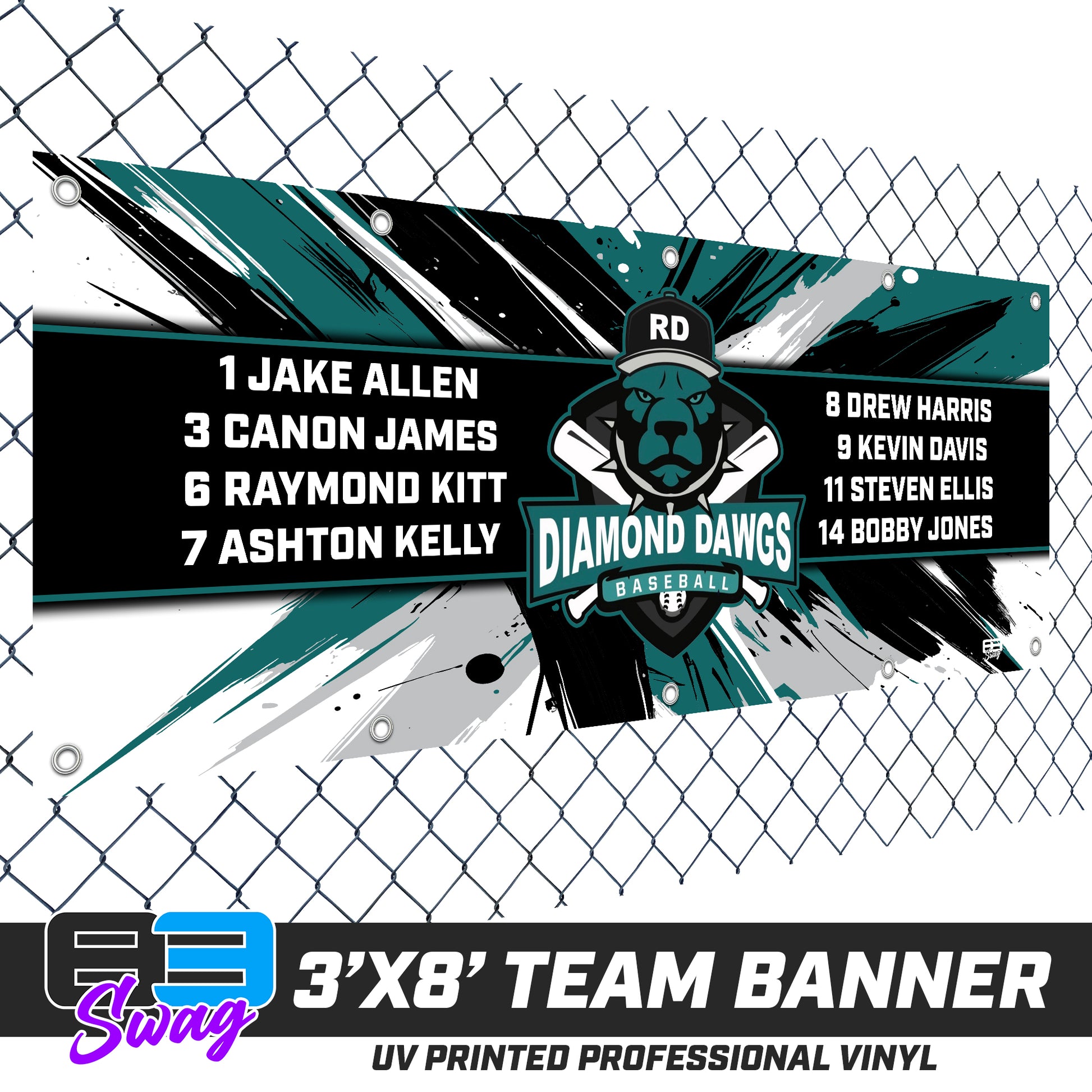 3'x8' Team Vinyl Banner with Roster - Diamond Dawgs V.2016