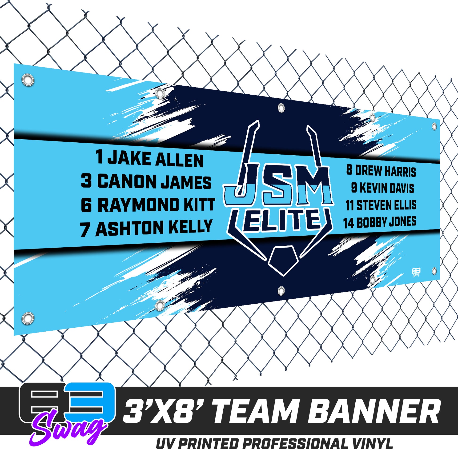 3'x8' Team Vinyl Banner with Roster - JSM ELITE Baseball